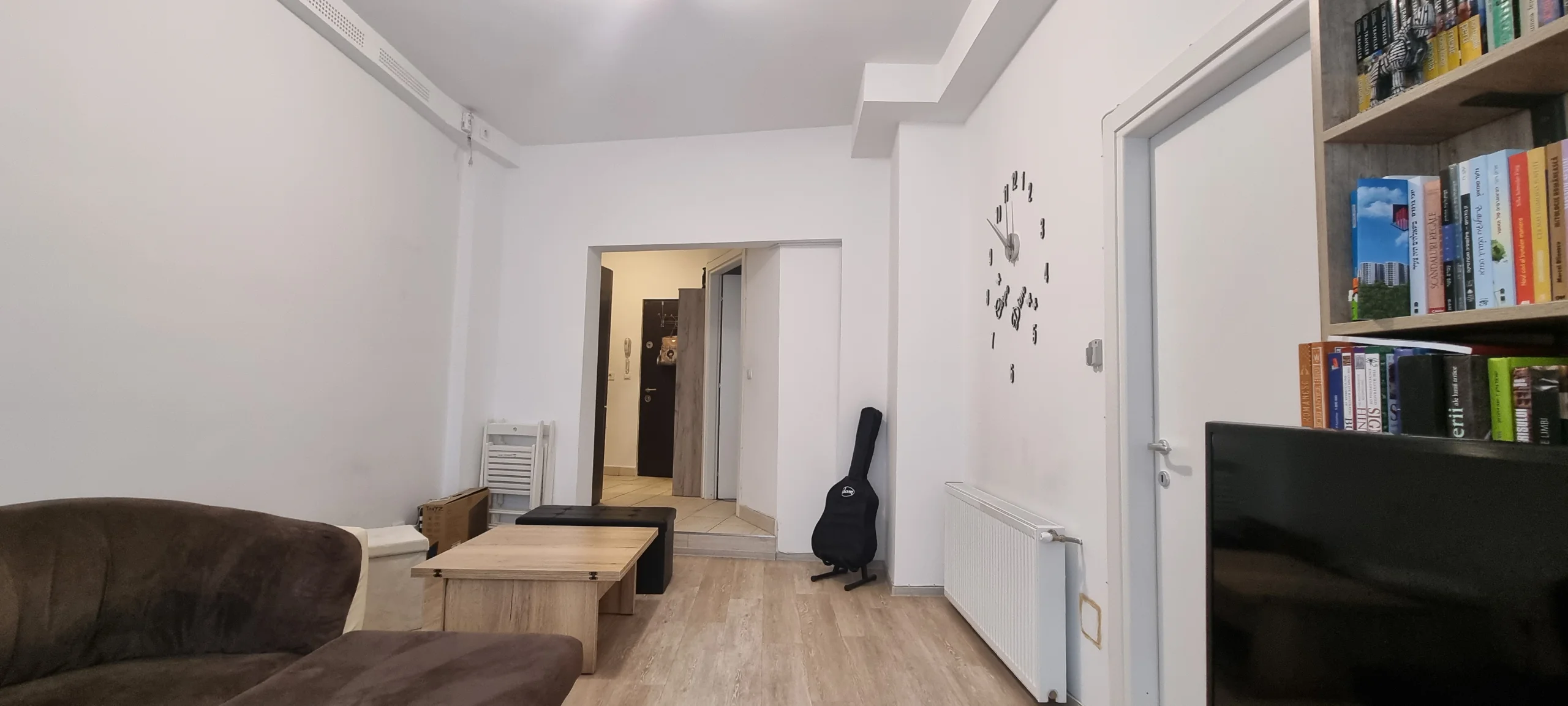 Dormitor cu deschidere la balcon, bucataria open, living, baie cu dus, in suprafata de 52 mp, semidecomandat, et.1/6, vedere stradala, intrarea superba !